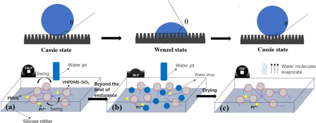 超疏水表面是生物进化过程中形成的独特界面,可以在荷叶、水蜘蛛和蝴蝶翅膀上观察到。超疏水性通常被定义为水接触角(WCA)大于150°,且滚动角小于10°的特性。超疏水性的原理在于利用微纳米级表面纹理和低表面能材料来实现疏水性。人工超疏水涂层在自清洁、防冰、防腐和油水分离等领域已展现出相当大的应用潜力。然而,机械性能的不足严重限制了超疏水涂层的实际应用。