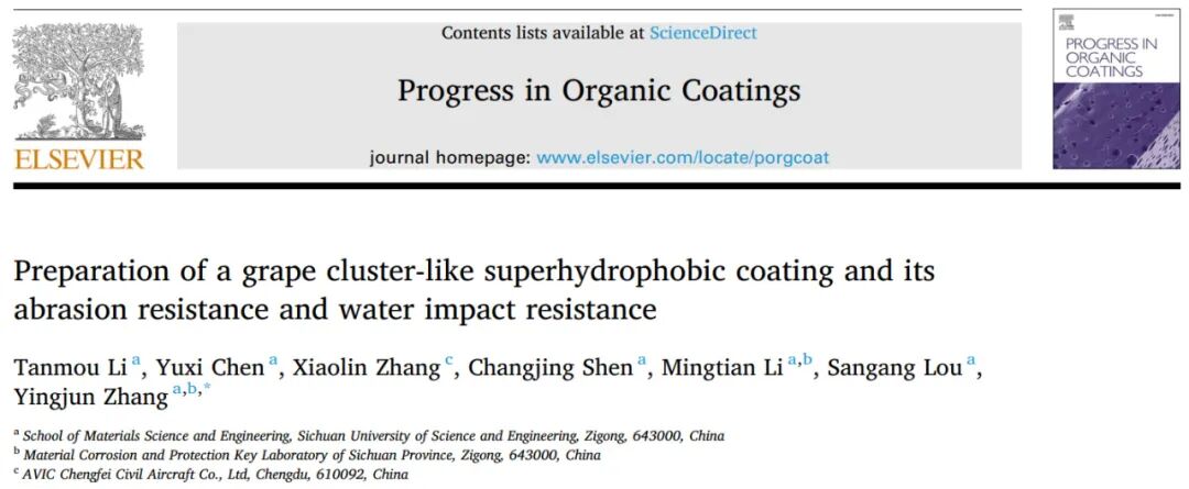 近期,四川轻化工大学张颖君团队受葡萄串抵御冰雹冲击方式的启发,成功制备了一种具有耐磨性、无氟、高抗水冲击、自相似结构和自修复性能的超疏水涂层。