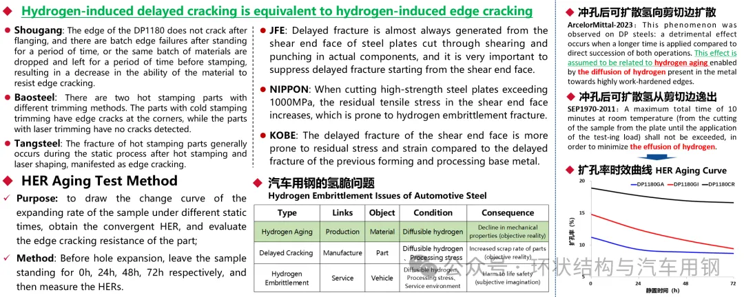 从专利文献分析,日本人将汽车用钢的氢脆问题几乎等价于剪切边延迟开裂,也为基于扩孔率制定氢时效性评价方法提供了依据。虽然日本人设想的是要解决整车服役阶段的氢脆问题,但实际解决的基本上是制造阶段的。