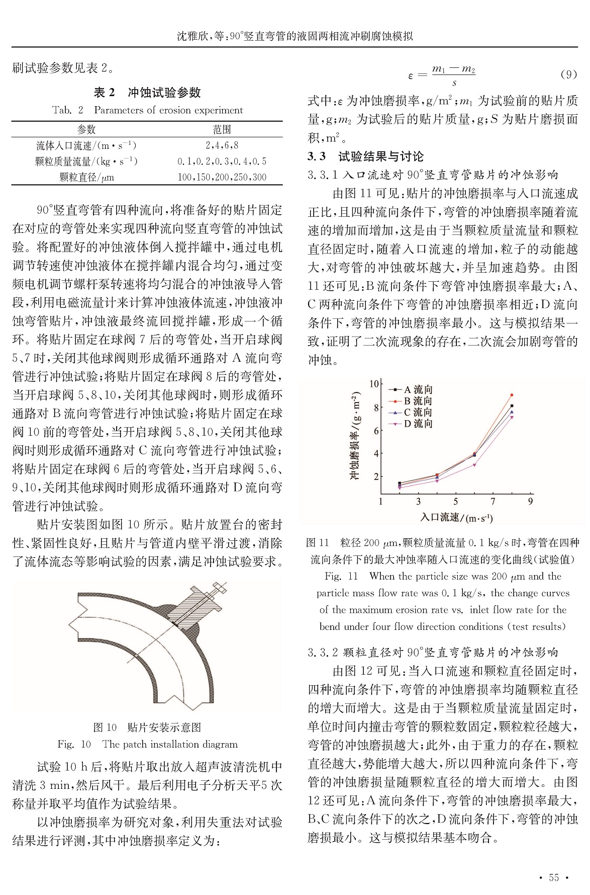 90℃竖直弯管的液固两相流冲刷腐蚀模拟