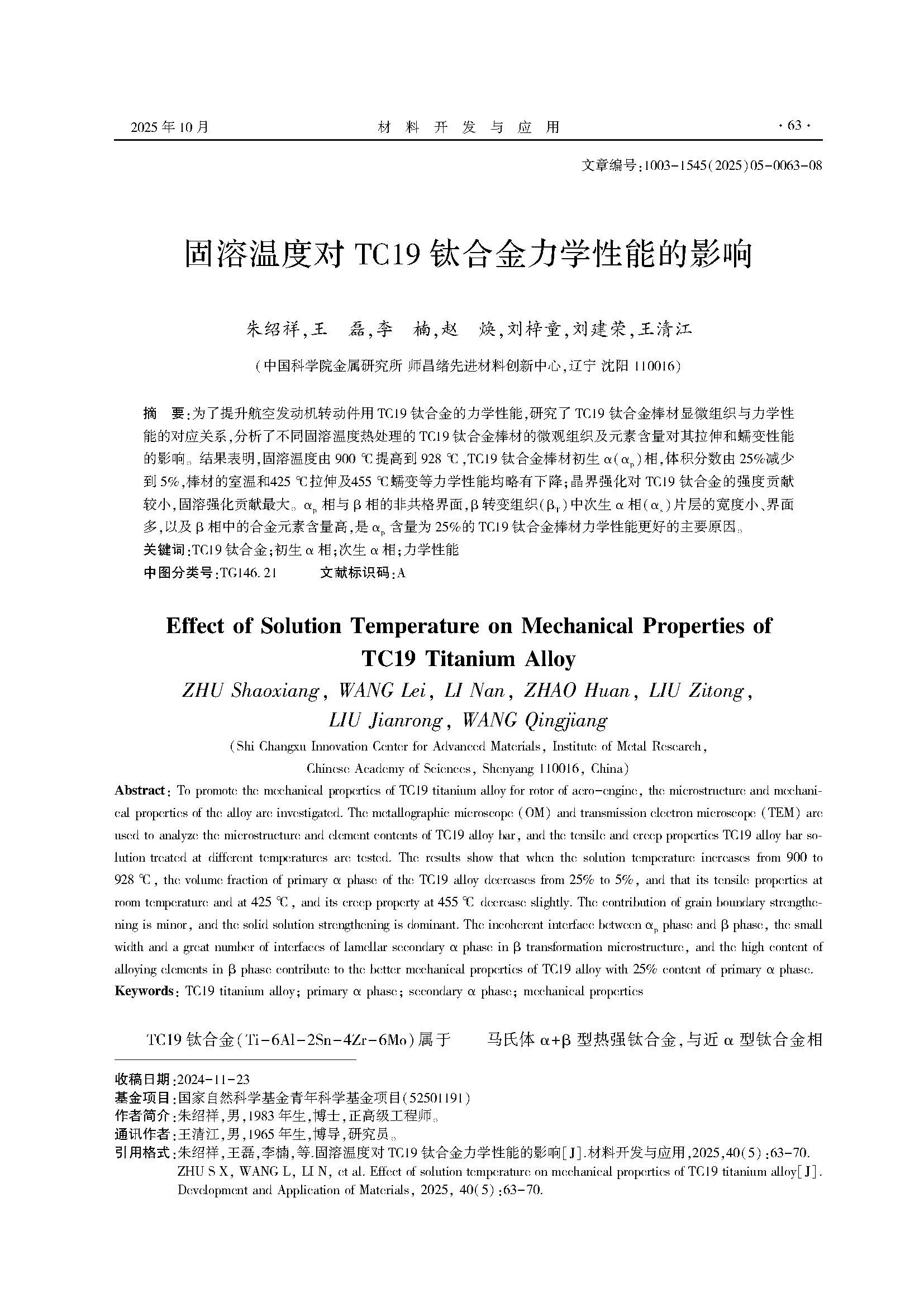 2025-11-07 10:12:04 作者:朱绍祥, 王  磊, 李  楠, 赵  焕, 刘梓童, 刘建 来源:材料开发与应用 分享至: