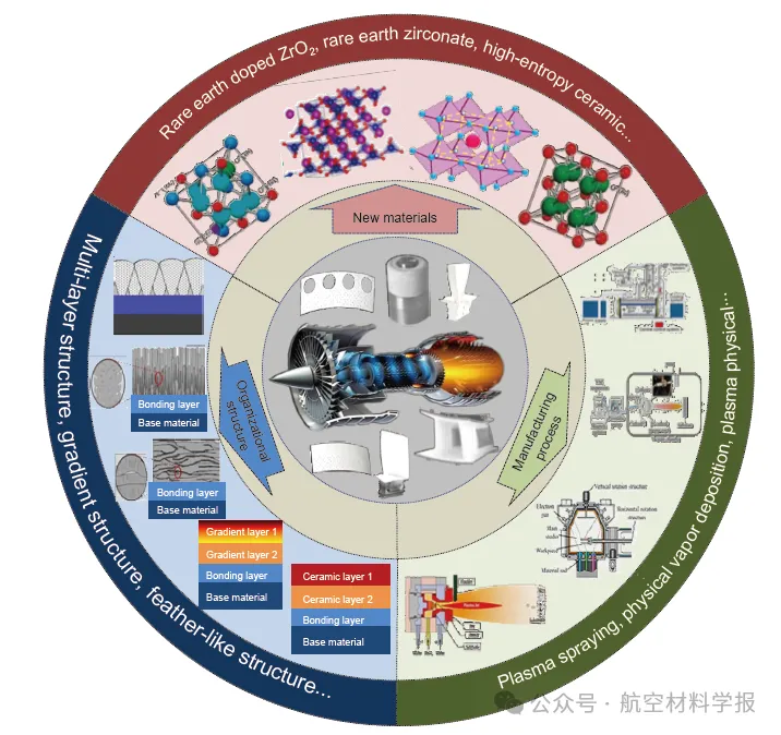 先进航空发动机热端部件的工作温度越来越高,服役环境更加苛刻,传统热障涂层无法满足使用要求,需研制耐温能力更强、综合性能更优的新型热障涂层。本文系统分析了先进航空发动机对新型热障涂层材料成分、制备工艺和组织结构方面的应用需求,阐述了大气等离子喷涂(APS)稀土掺杂ZrO2、电子束物理气相沉积(EB-PVD)稀土锆酸盐和等离子物理气相沉积(PS-PVD)高熵陶瓷三种新型热障涂层的应用研究进展。相比于双层结构的传统YSZ热障,基于稀土掺杂ZrO2、稀土锆酸盐或高熵陶瓷等材料体系的新型热障涂层,具有更低的热导率、更强的抗热冲击能力和更优异的耐CMAS腐蚀性能,通过与APS、EB-PVD及PS-PVD等工艺深度结合,使其使用性能大幅提升,可应用于浮动瓦片和涡轮叶片等热端部件。随着新材料、新结构和新工艺的不断突破,新型热障涂层必将为下一代航空发动机突破温度极限、实现更高效率与更高可靠性提供支撑。