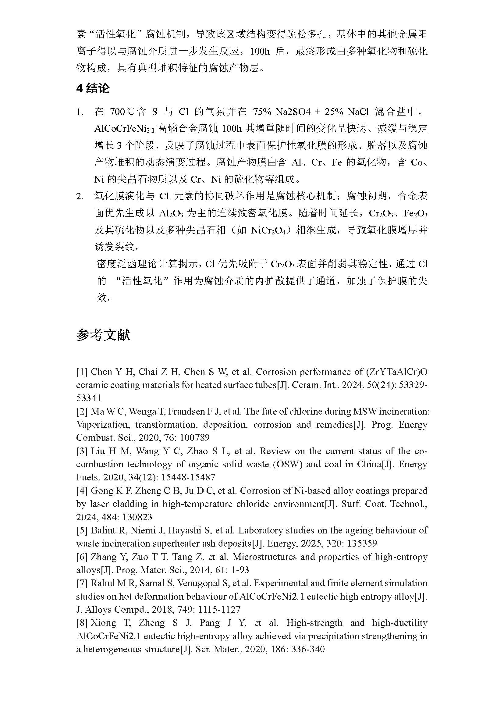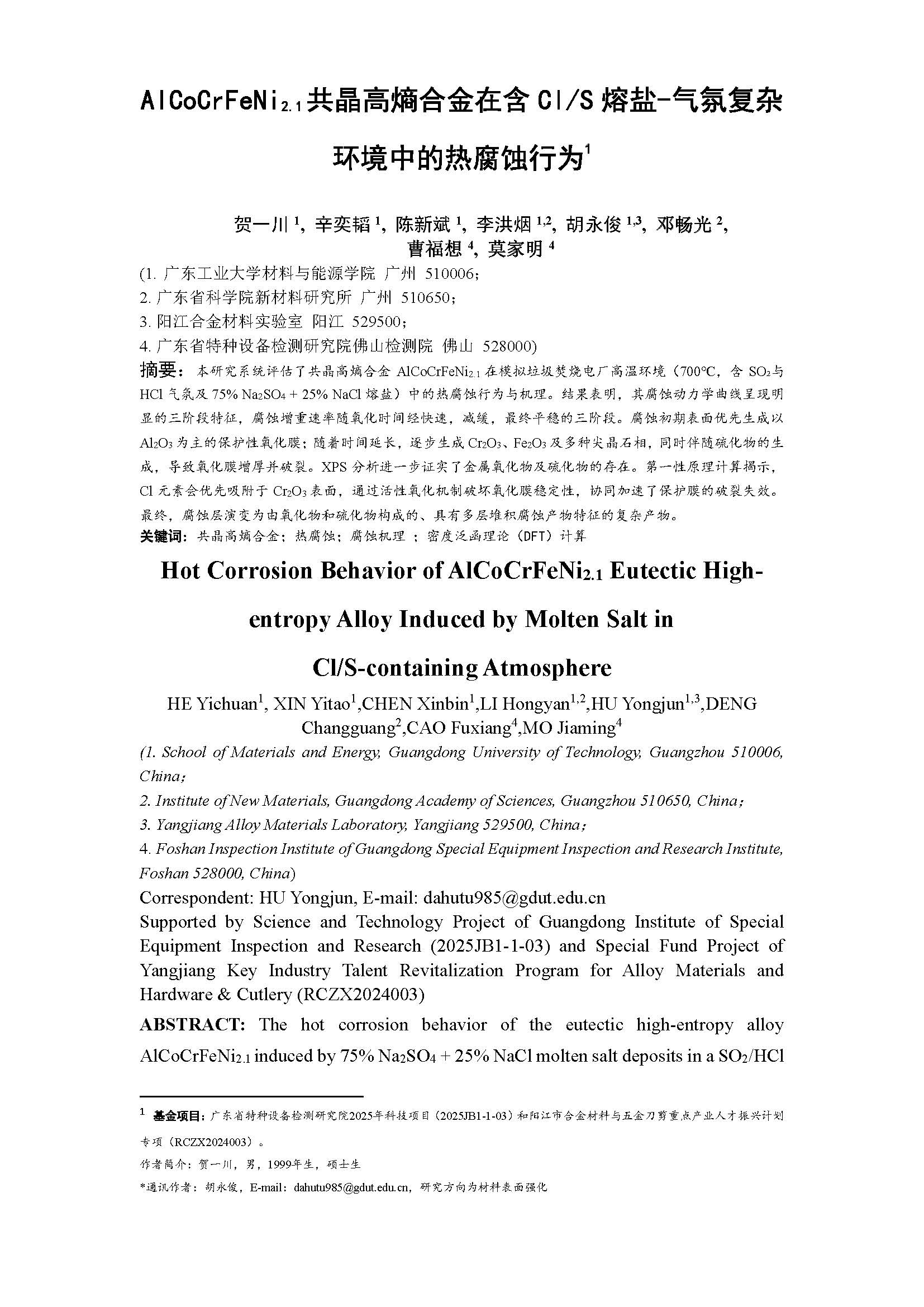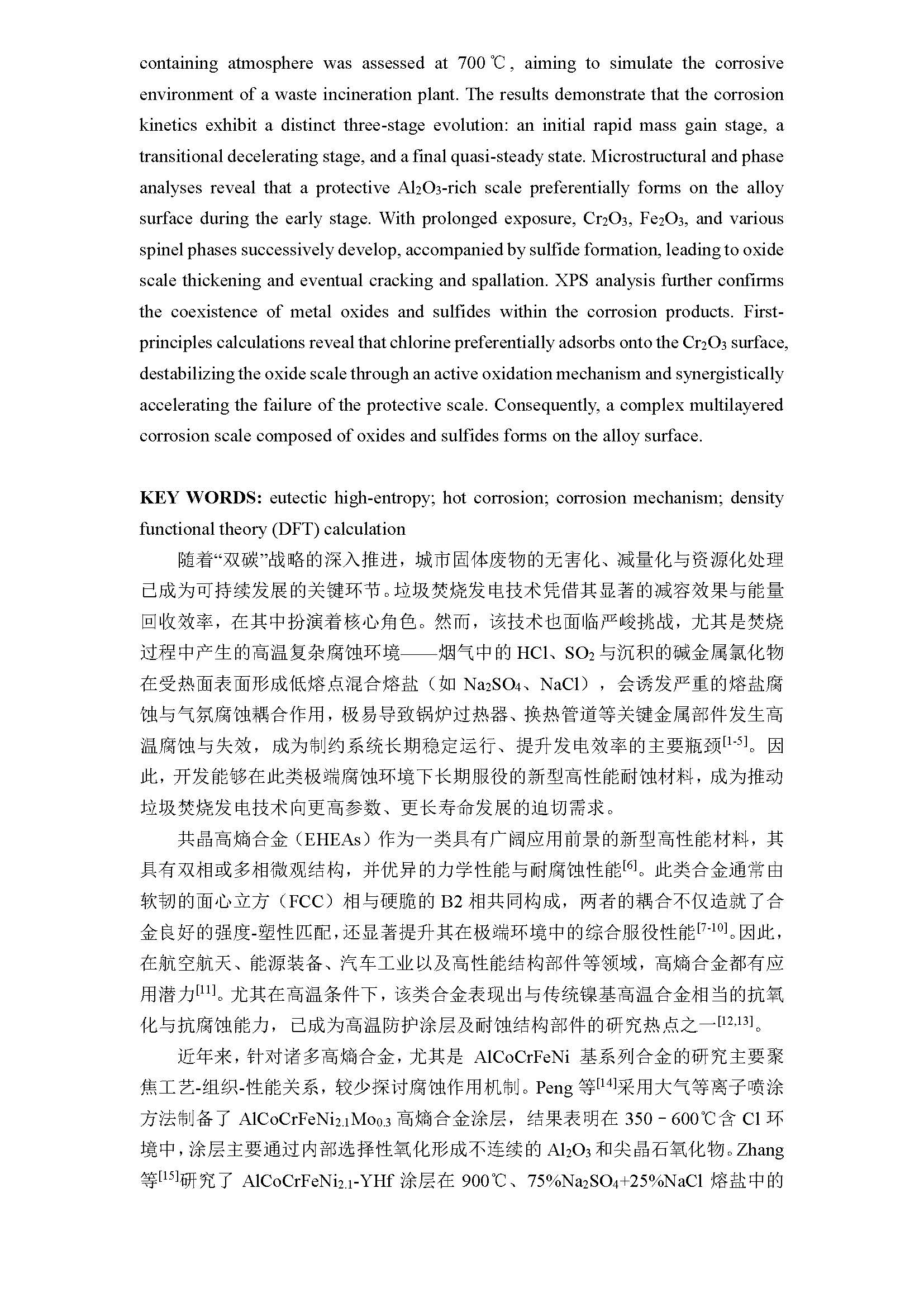 AlCoCrFeNi2.1共晶高熵合金在含Cl/S熔盐-气氛复杂环境中的热腐蚀行为