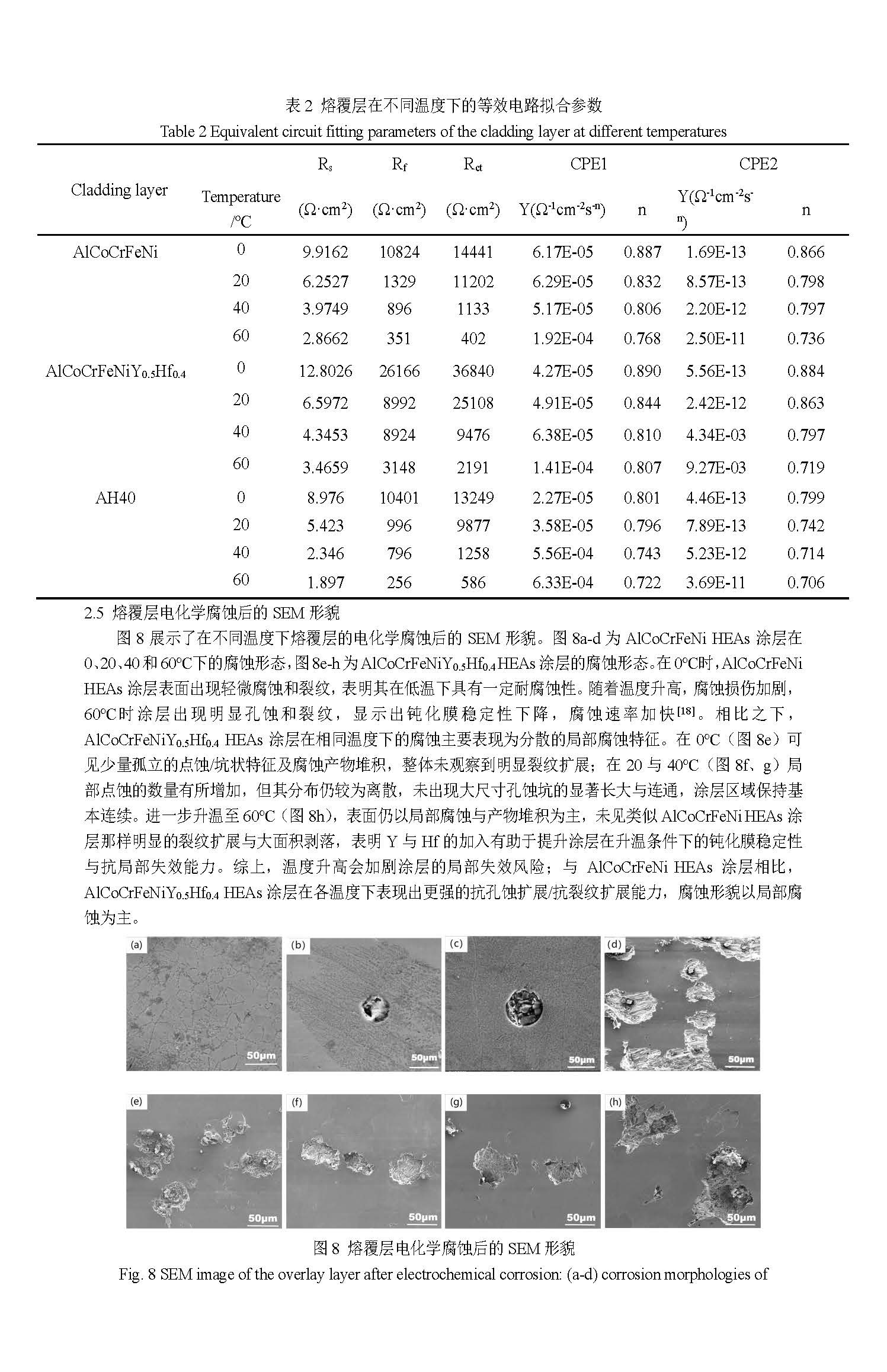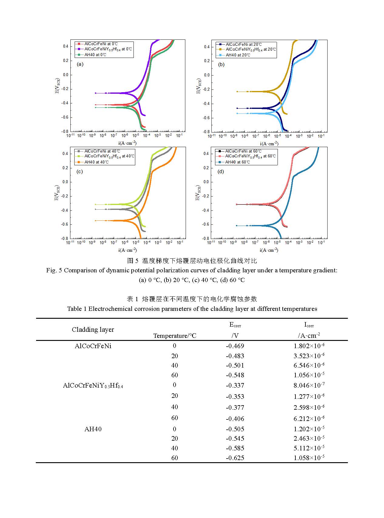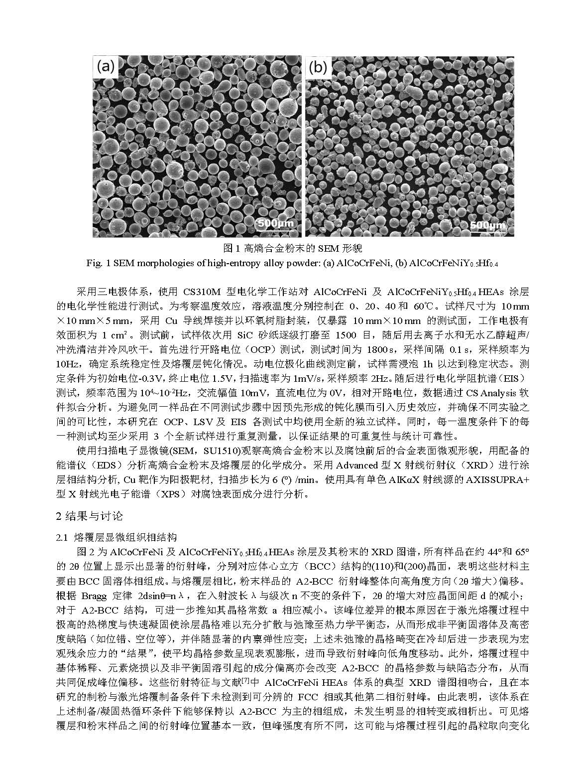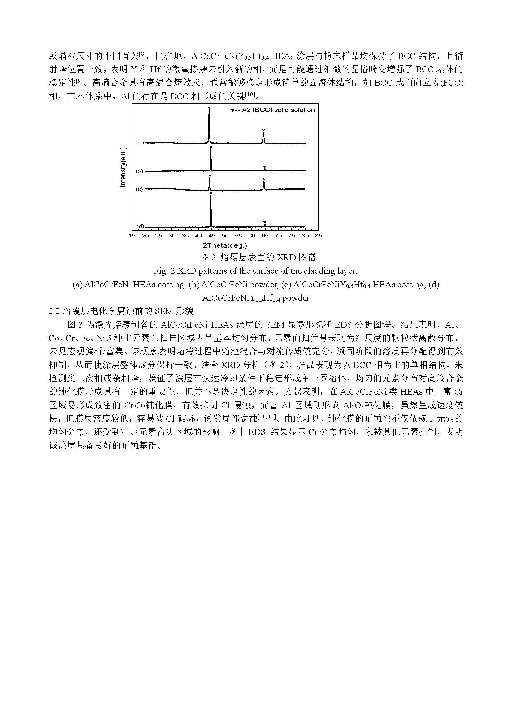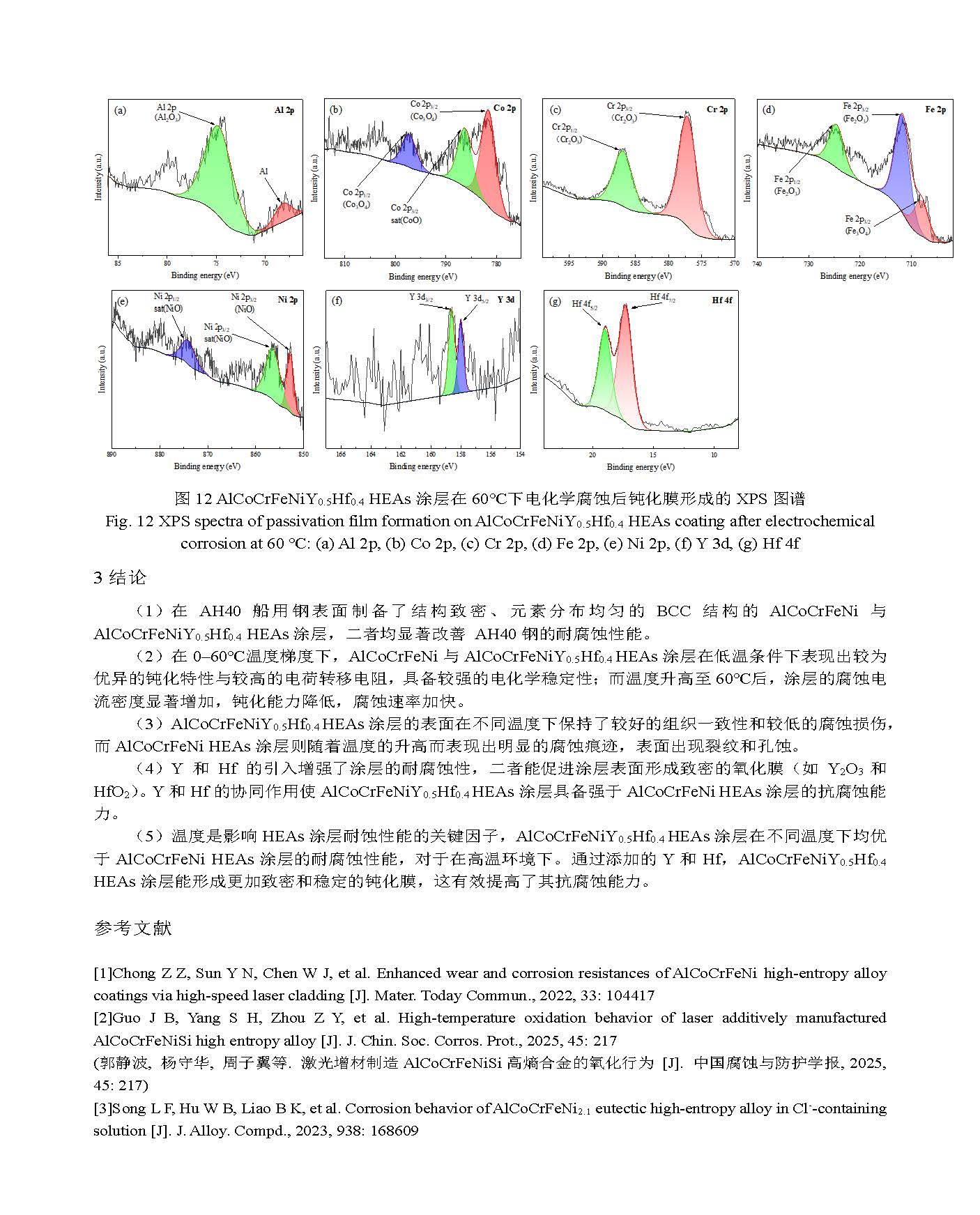 添加Y、Hf对AlCoCrFeNi高熵合金涂层在 NaCl溶液中的腐蚀行为的影响