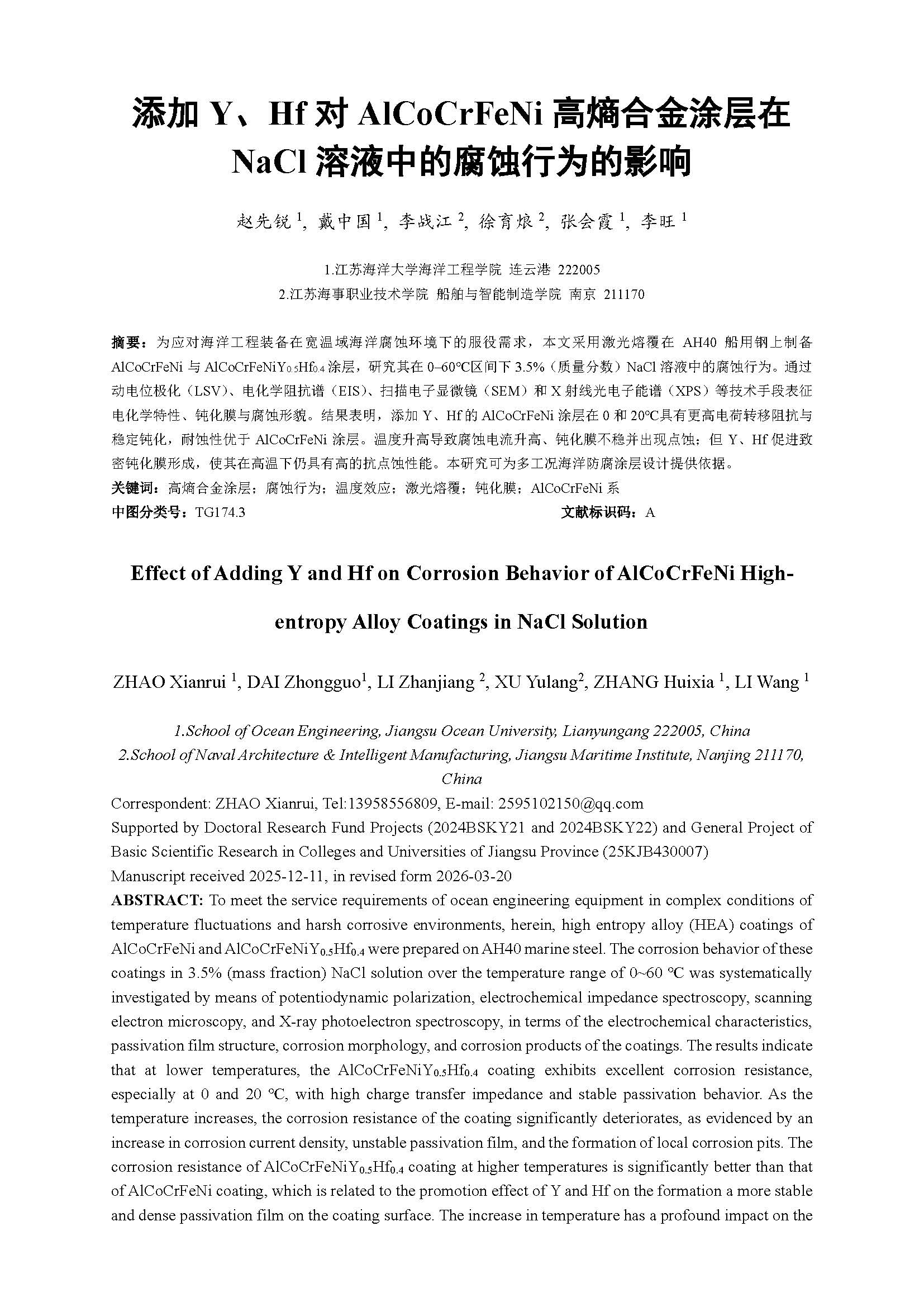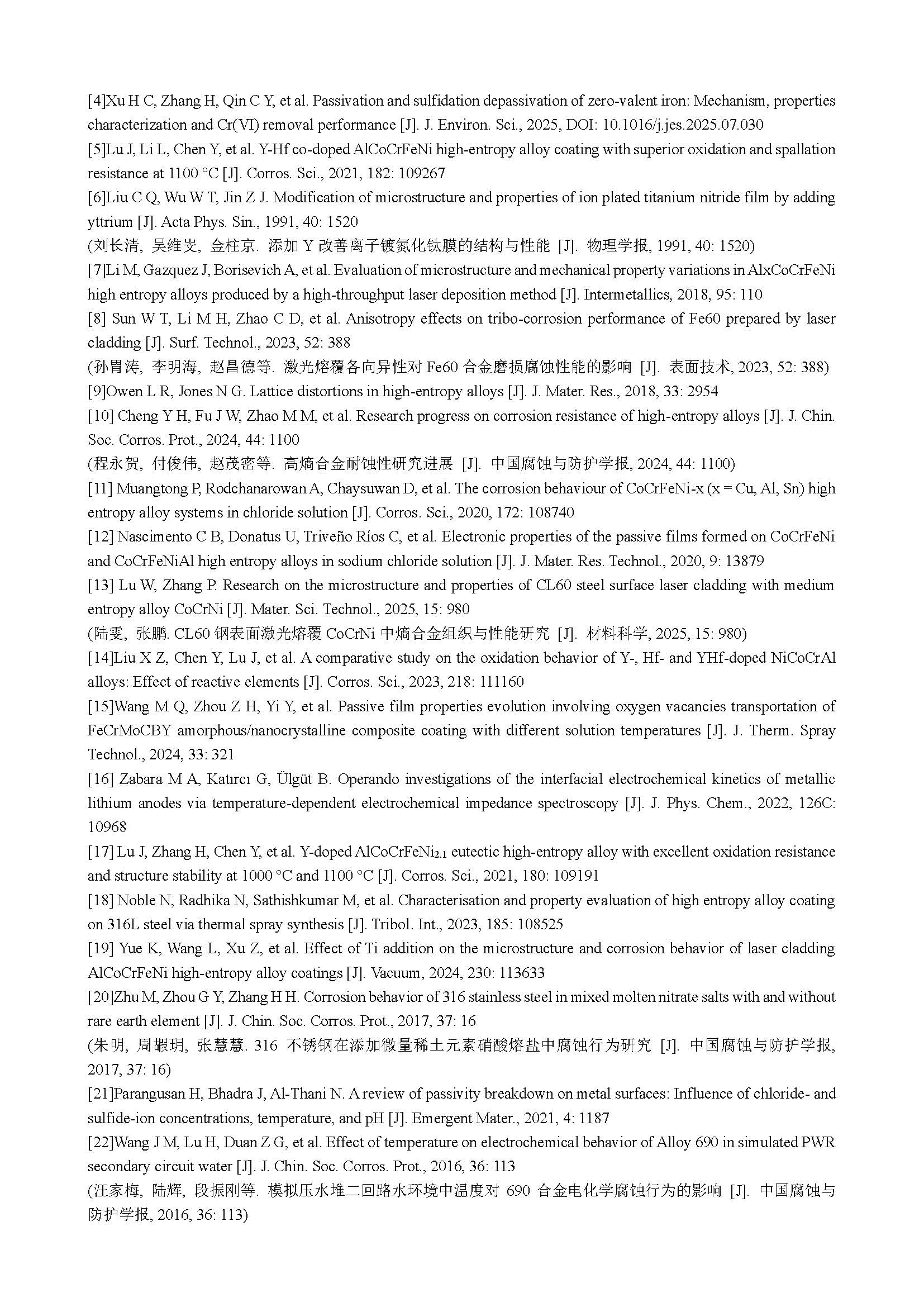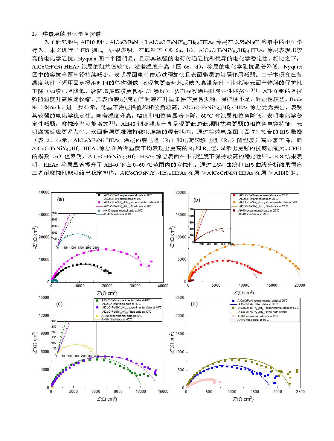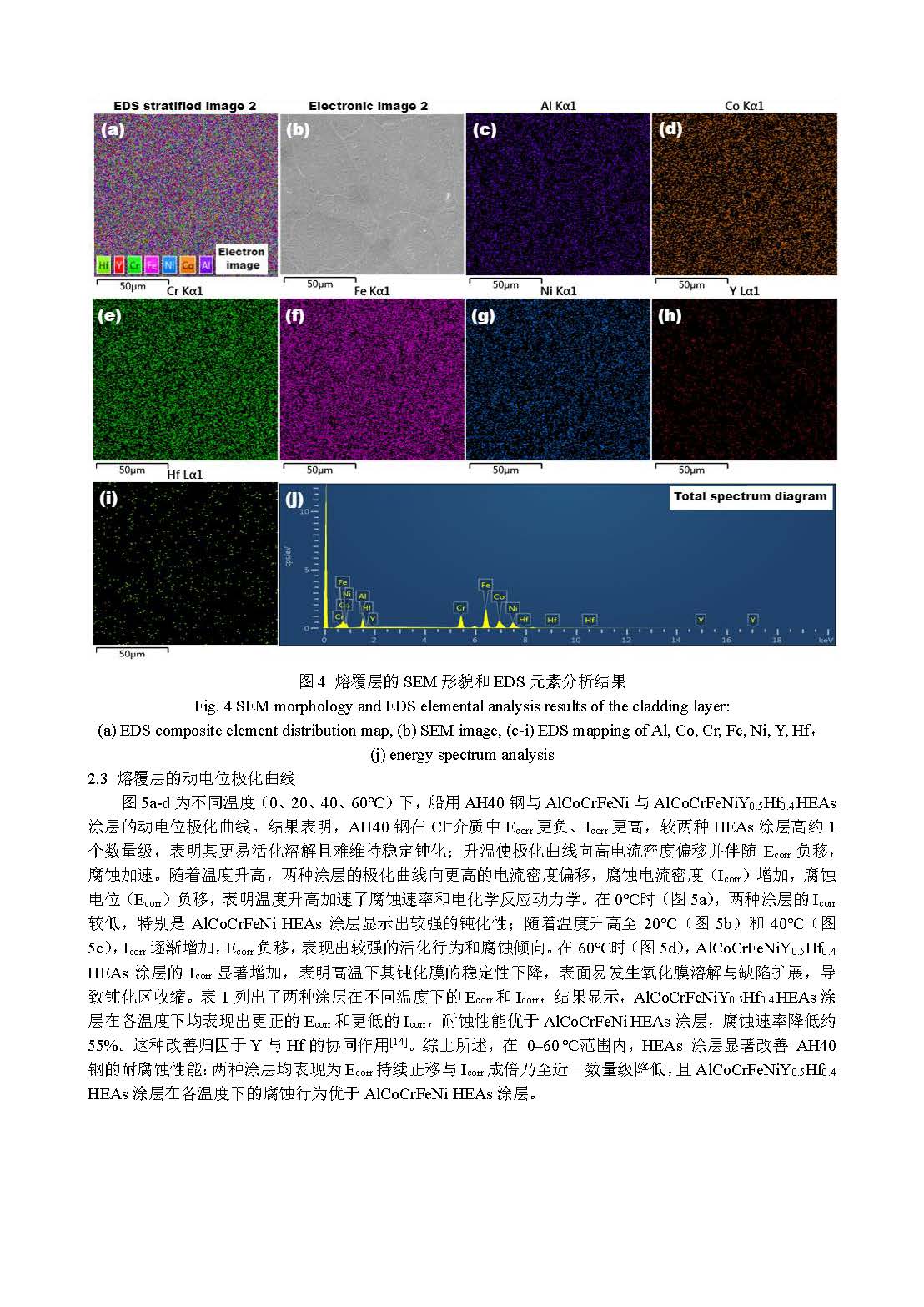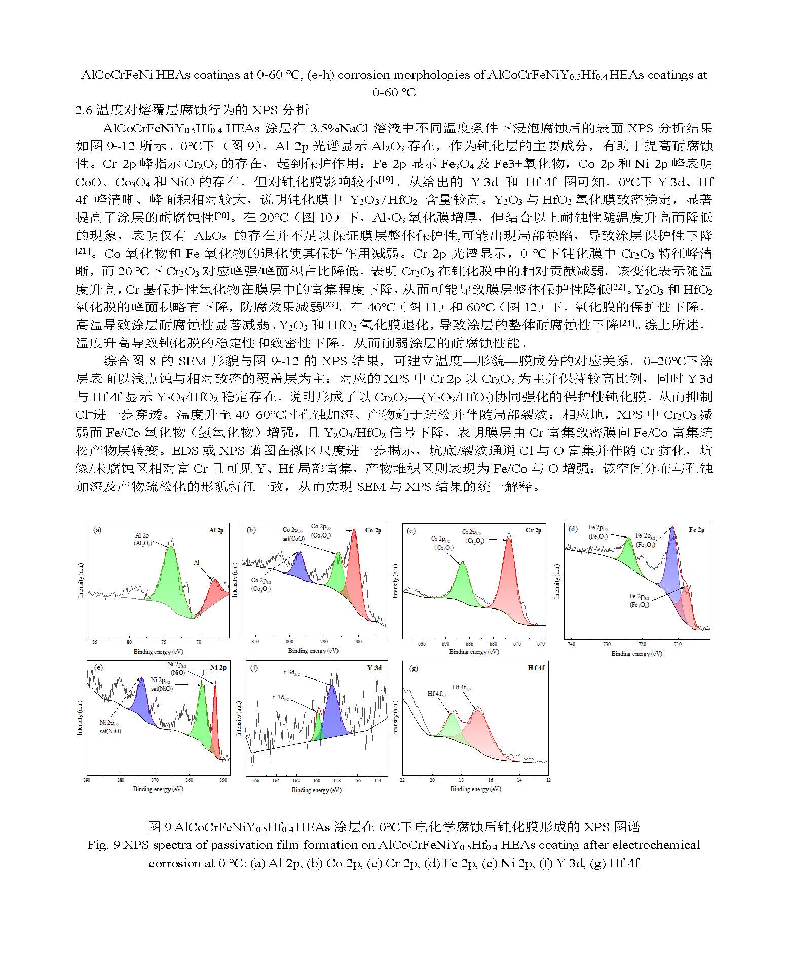 添加Y、Hf对AlCoCrFeNi高熵合金涂层在 NaCl溶液中的腐蚀行为的影响