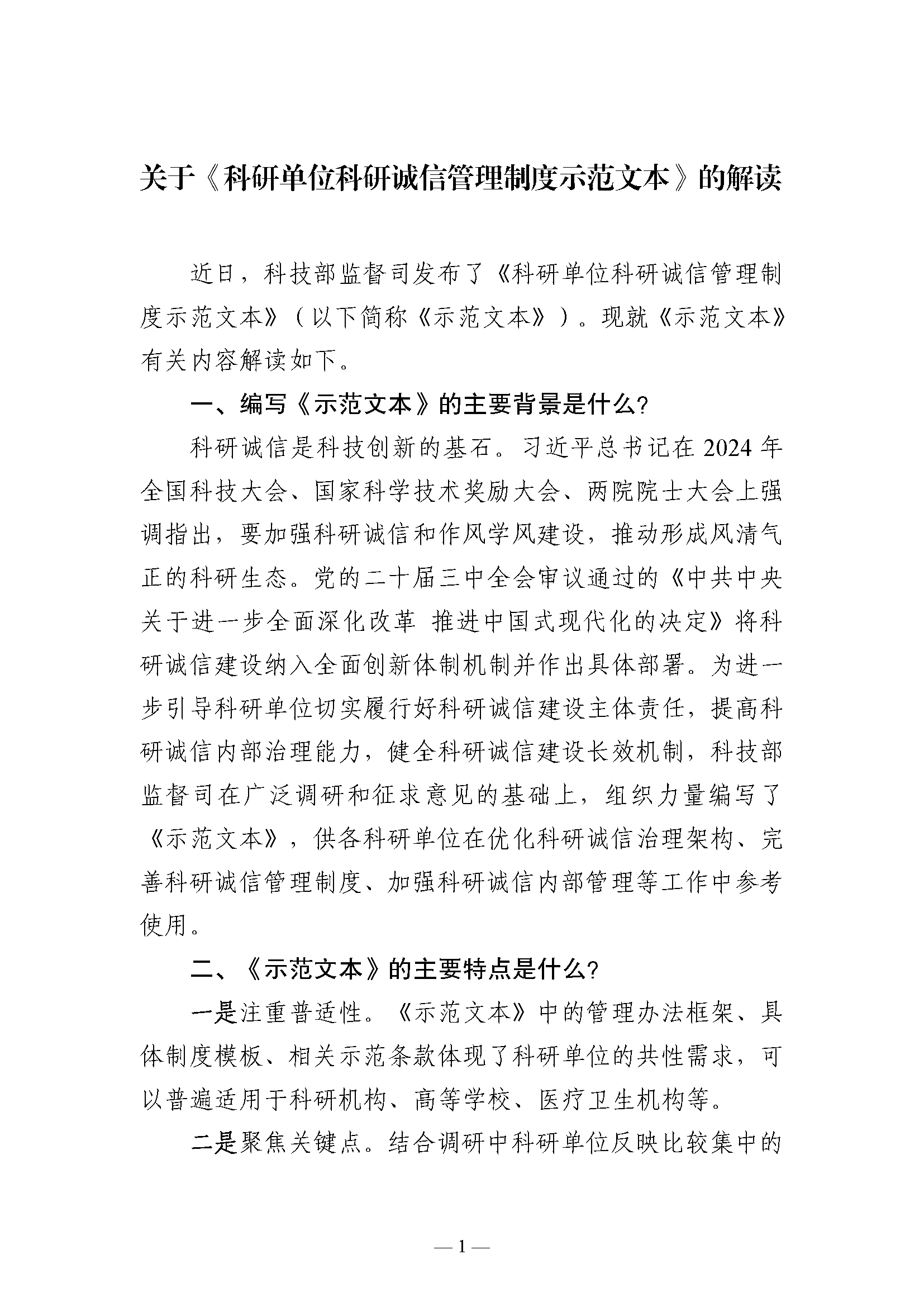 2. 关于《科研单位科研诚信管理制度示范文本》的解读