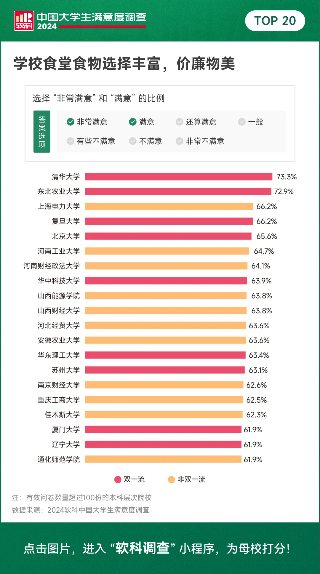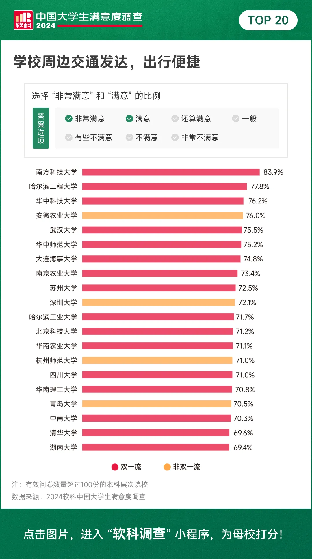 去年你的学校上榜了吗?今年哪所大学会斩获第一?哪些大学又将弯道超车,凭借超强口碑,成为最满意大学队伍的新成员?