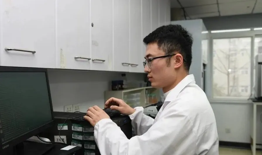 博士研究生王红星正在查看试验数据(记者 徐行 摄)