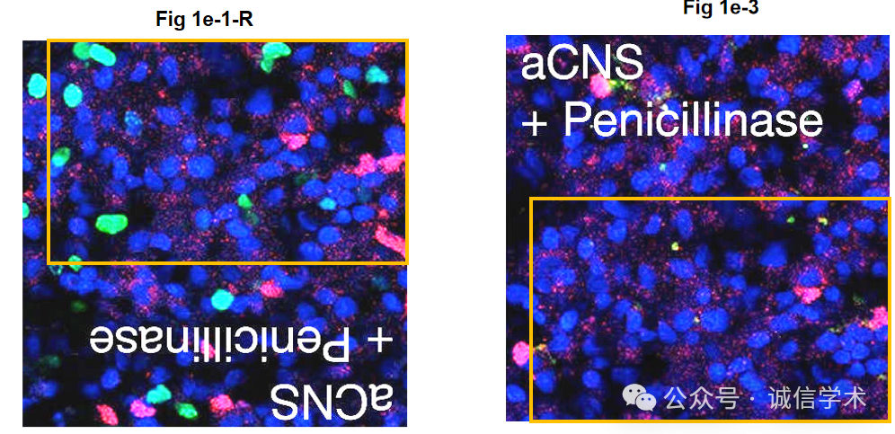 对所有图片(除蛋白印迹)进行检测,iFigures发现涉嫌2对图片重复使用:图4b-4与E9a-3涉嫌重叠,E9a-3与E9e-6涉嫌明显的重叠。