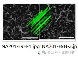诚信科研将图1E-1与1E-3放大及调亮,同时将图1E-1进行旋转得到图1E-1-R,发现图1E-1-R与1E-3出现明显的重叠。