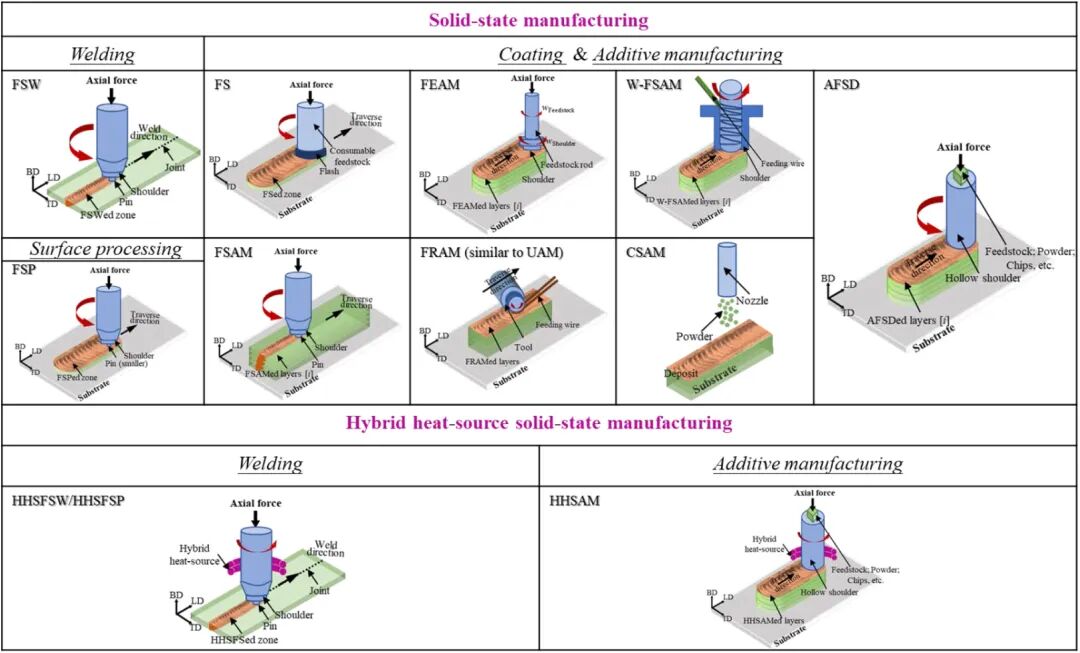 固态增材制造的兴起:一种名为“搅拌摩擦沉积增材制造(AFSD)”的技术应运而生。它在加工过程中金属不熔化,而是通过摩擦热和压力使其“软化”并层层堆积成型,从而避免了上述缺陷。