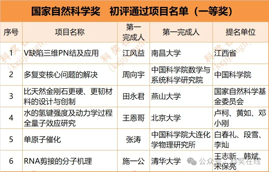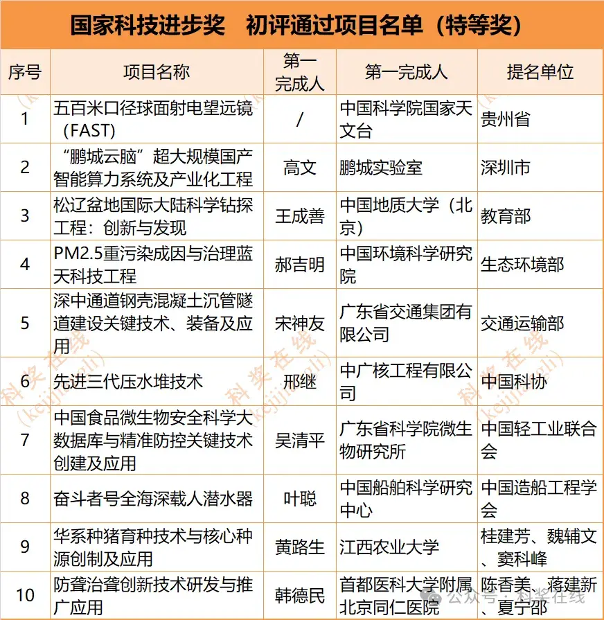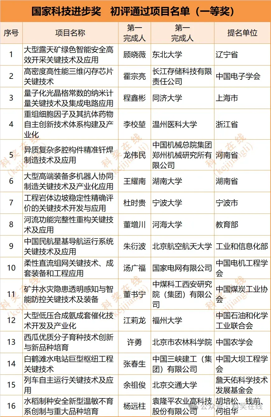 超60位院士候选人的国家奖项目通过初评,特等奖6项、一等奖5项,二等奖54项(点阅查看名单);
