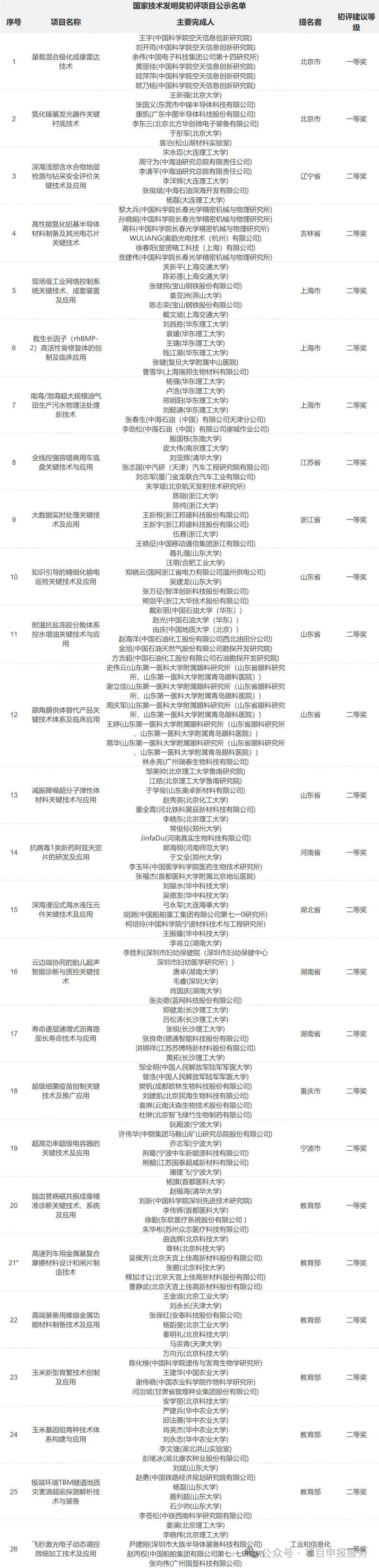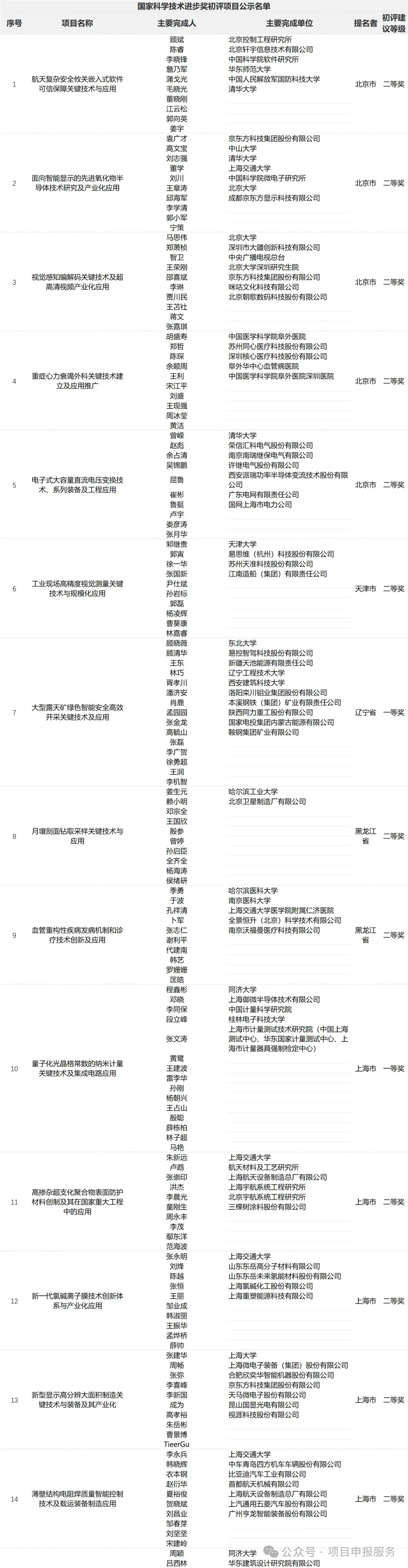 共302项成果通过初评,含60项自然科学奖项目、51项技术发明奖通用项目、134项科学技术进步奖通用项目,专用项目57项(20项技术发明奖、37项科学技术进步奖)。