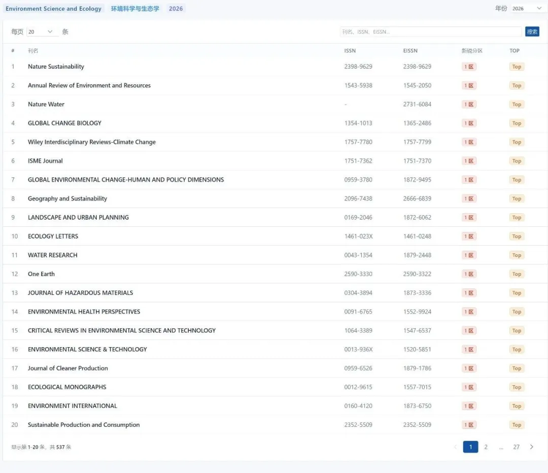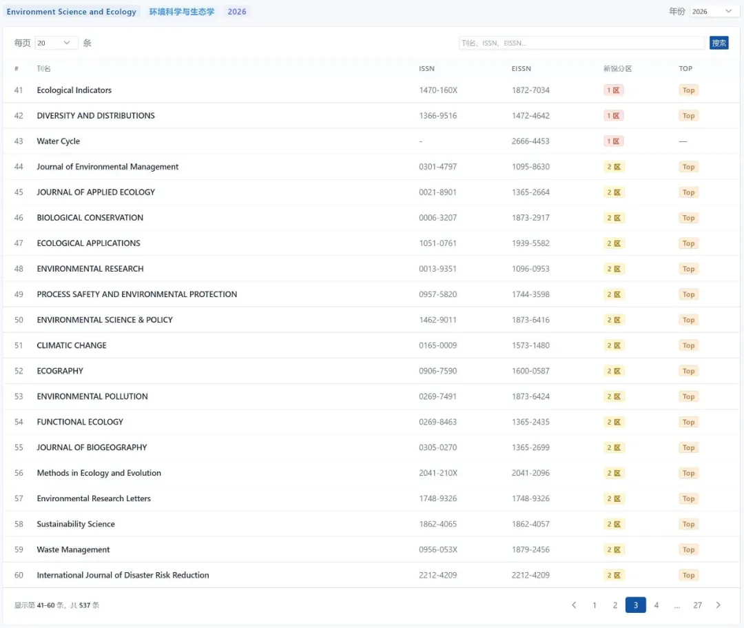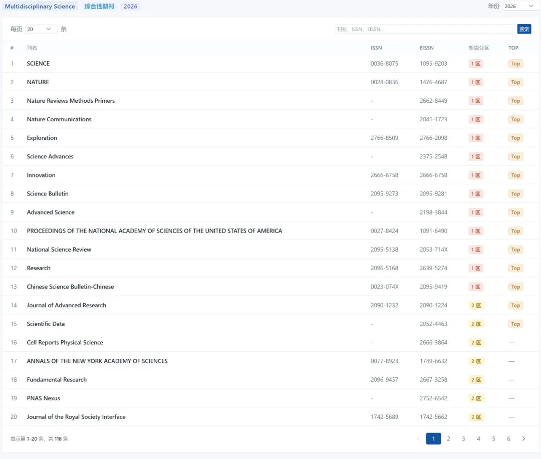 下面是新锐学术部分期刊分区信息。