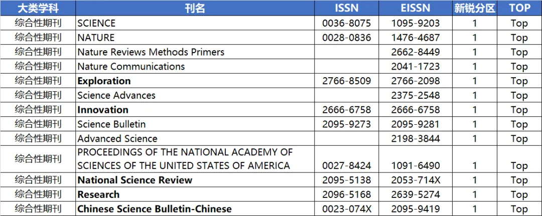 1、CNS期刊稳居1区TOP,5本国产综合性期刊跻身1区。