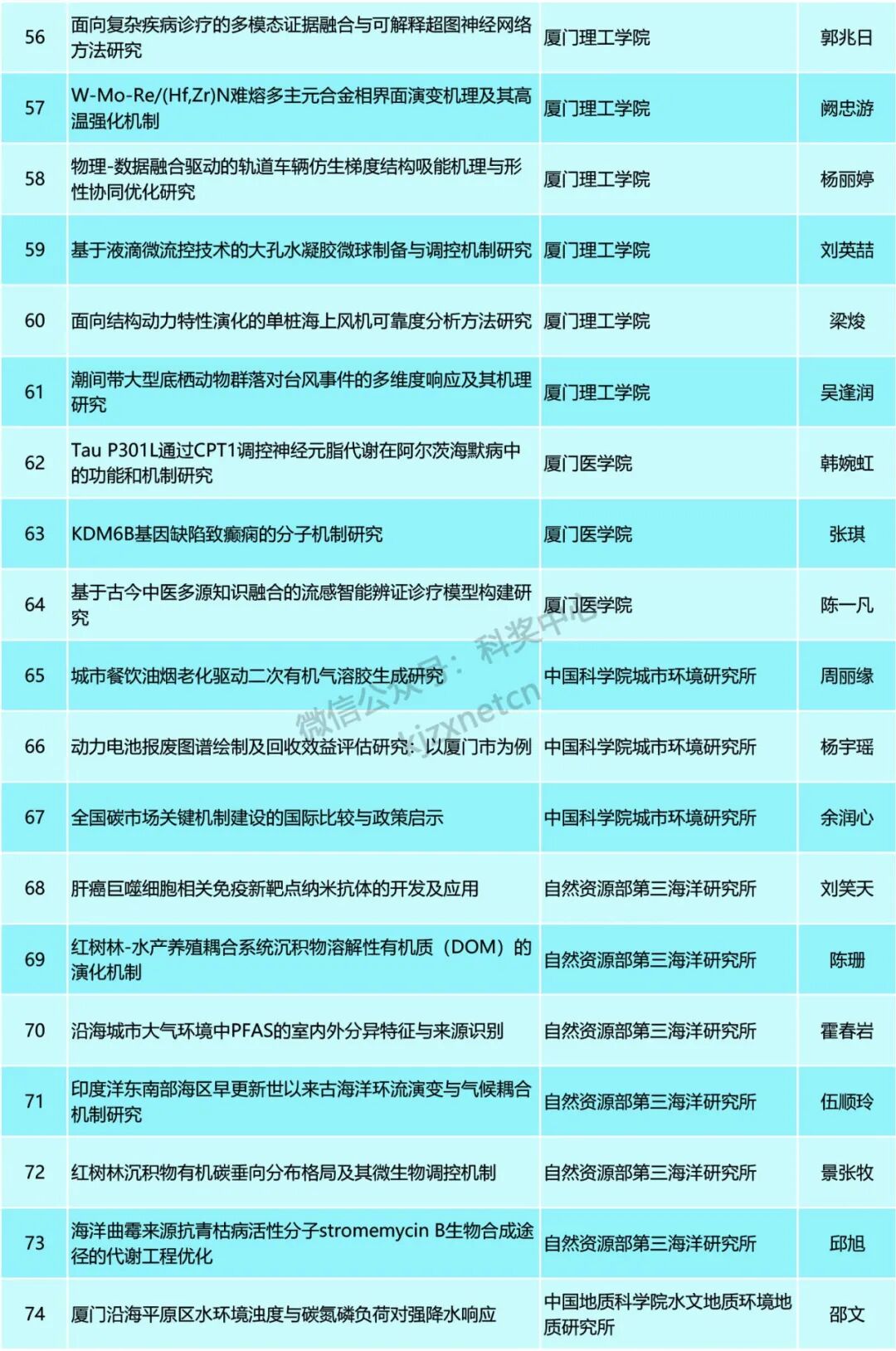 根据《厦门市自然科学基金项目管理办法》、《厦门市市级科技计划项目管理办法》等规定,市科技局开展2026年度厦门市自然科学基金项目申报工作,经自行申报、材料审核、局办公会研究等程序,拟对2026年度厦门市自然科学基金“免评审”青年项目进行立项,现予以公示(详见附件)。