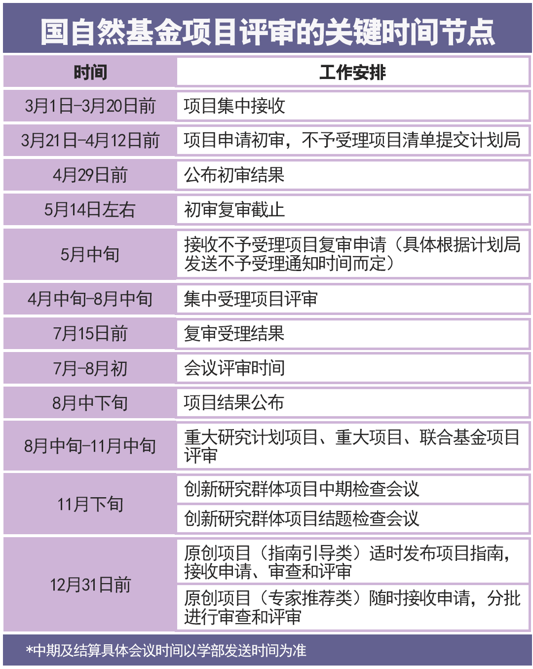 集中接收的大部分项目类型,资助结果一般在当年 8 月中下旬公布,其余项目根据项目评审进程陆续公布。非集中接收期项目的资助结果按照自然科学基金委发布的指南和评审进程陆续公布。具体情况见基金委网站通知通告。