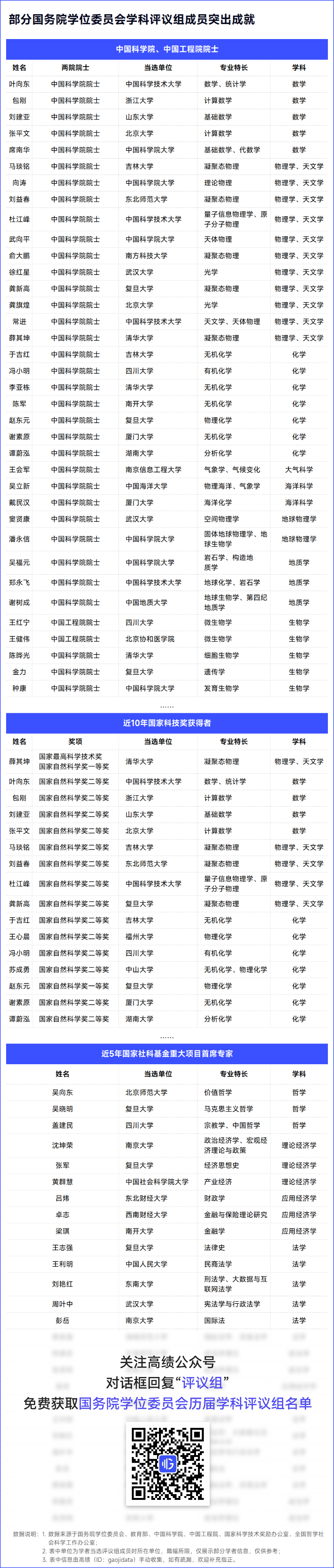 回复下载 关注“高绩”公众号,对话框回复“评议组”,获取国务院学位委员会历届学科评议组名单。 四分之一以上,续聘!