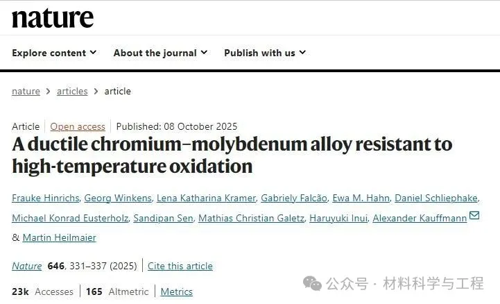 《Nature》重磅!一种耐高温氧化(1100℃)的韧性铬钼合金