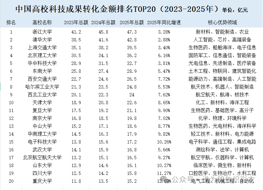 中国内地高校科技成果转化金额排名TOP20一览!一起来看看你的高校上榜了吗