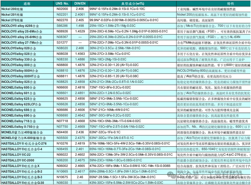 Inconel600:早期经典牌号,固溶强化,抗高温氧化,耐碱腐蚀;