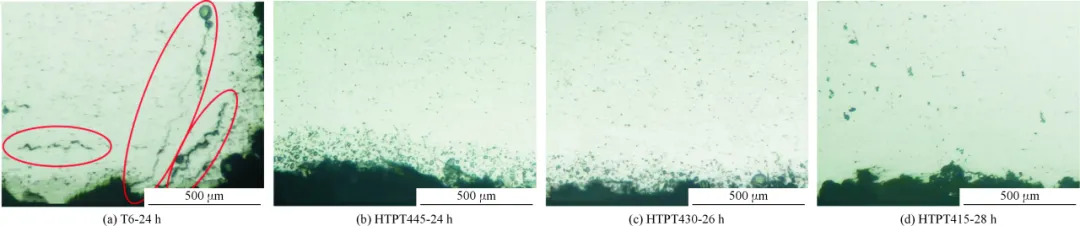 通过高倍透射电镜观察晶界,研究揭示了性能差异的根源。传统T6工艺后,晶界析出相细小且密集,容易成为腐蚀通道。而经过高温预时效(特别是430℃和445℃)后,晶界析出相明显长大、间距变宽、分布变得稀疏。这种结构能有效阻碍腐蚀沿晶界扩展,从而大幅提升耐蚀性。同时,晶内强化相受影响较小,因此力学性能得以较好保留。