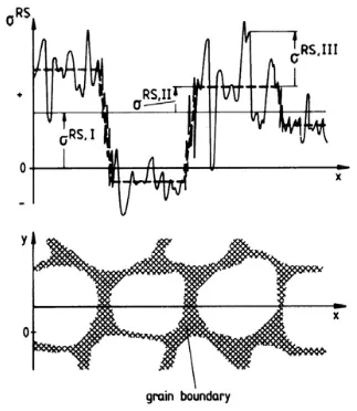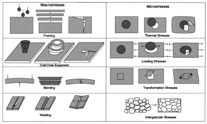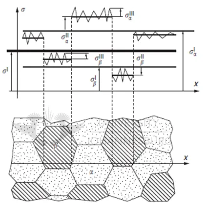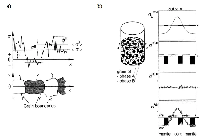 由材料中的不匹配所产生的残余应力类型。图中所示的所有应力均被分类为宏观应力和微观应力