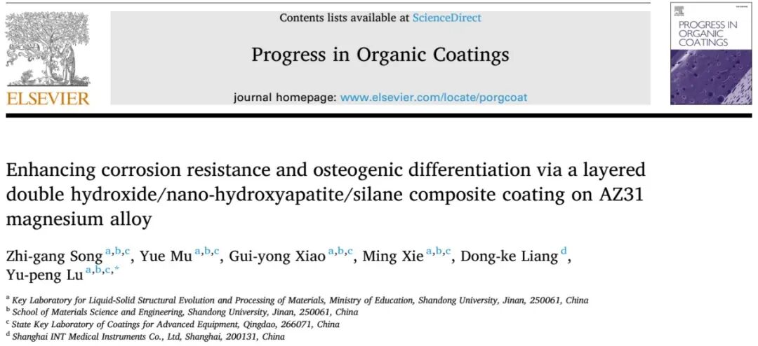 山东大学:在AZ31镁合金上制备具有耐腐蚀性和成骨分化能力的复合涂层