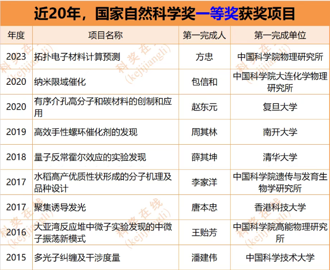 至高荣誉!近20年,国家科技奖特等奖、一等奖获奖名单来了!